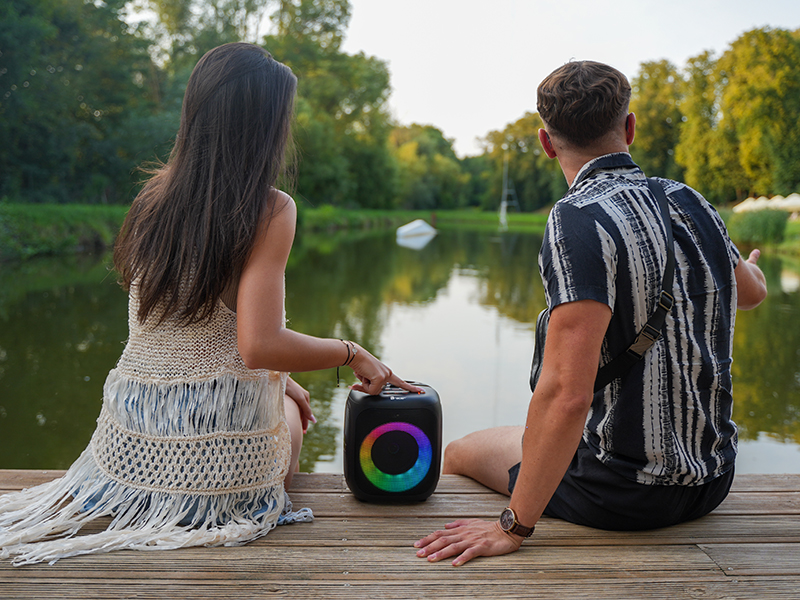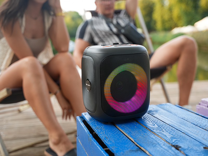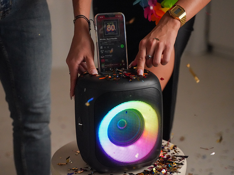 Efektowne podświetlenie RGB LED nie tylko nadaje głośnikowi nowoczesny wygląd, ale również tworzy wyjątkową atmosferę, synchronizując się z rytmem muzyki. Każda impreza nabierze barw dzięki dynamicznym efektom świetlnym.