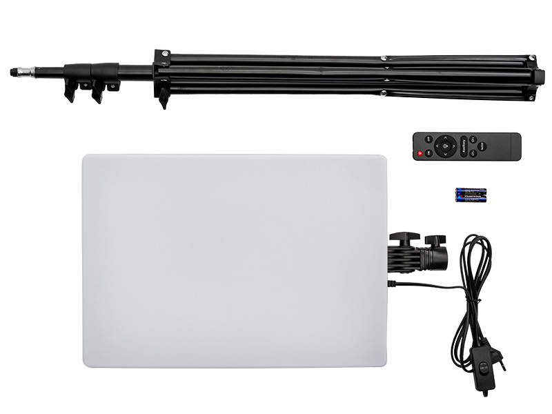 • Zestaw jest wyposażony w lampę 26cm, statyw oraz pilot pozwalający regulować natężenie światła oraz barwę światła
