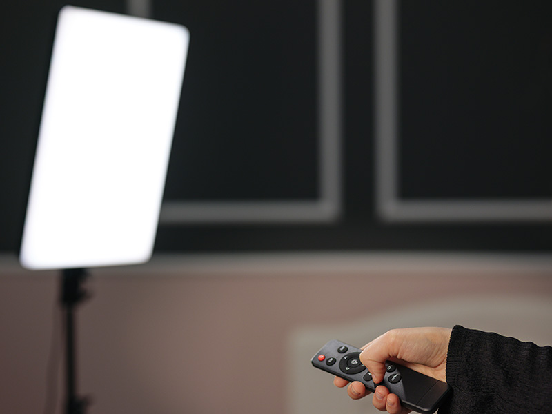 Lampa oferuje pełną kontrolę nad barwą światła (3000–6500 K) oraz regulację natężenia, co pozwala na idealne dopasowanie oświetlenia do nastroju i sceny. Dodatkowo, regulacja kąta nachylenia umożliwia precyzyjne ustawienie strumienia światła tam, gdzie jest najbardziej potrzebne. Jasne, równomierne światło eliminuje niechciane cienie i znacząco poprawia jakość wizualną materiału.