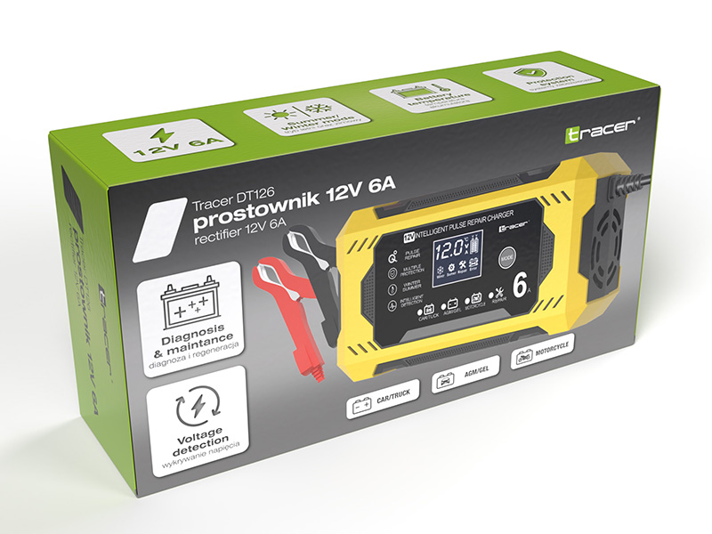 Tracer DT128 nie tylko dostarcza energię, ale także dba o kondycję akumulatora. Funkcja diagnozy umożliwia ocenę stanu ogniw, wykrywa problemy i informuje o kondycji baterii. Tryb regeneracji pozwala natomiast na przywrócenie sprawności akumulatorom głęboko rozładowanym lub osłabionym. To rozwiązanie, które wydłuża żywotność baterii i minimalizuje koszty związane z jej wymianą.